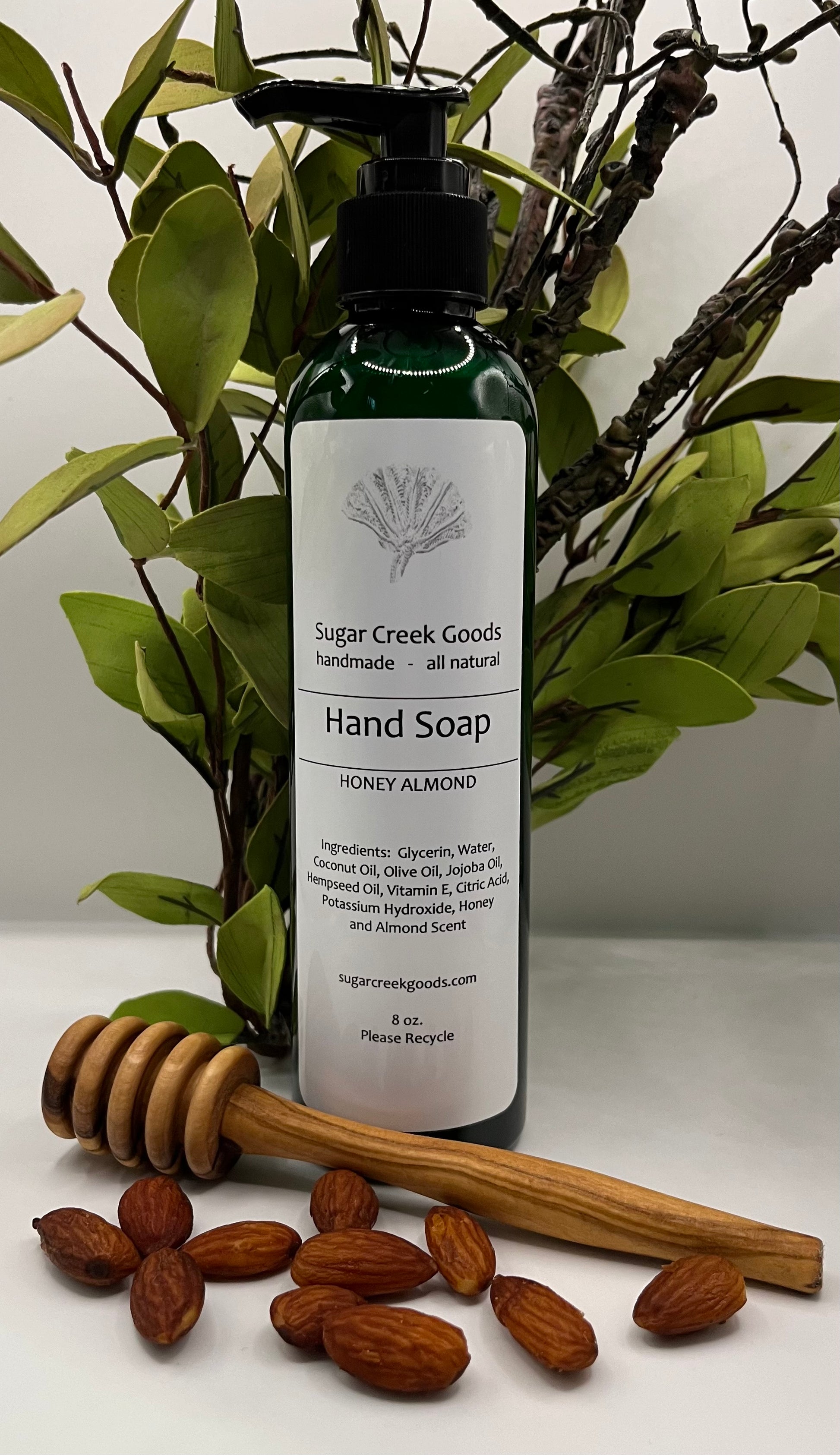 Ingredients: Glycerin, Water, Coconut Oil, Olive Oil, Jojoba Oil, Hempseed Oil, Vitamin E, Citric Acid, Potassium Hydroxide, Honey Almond Scent