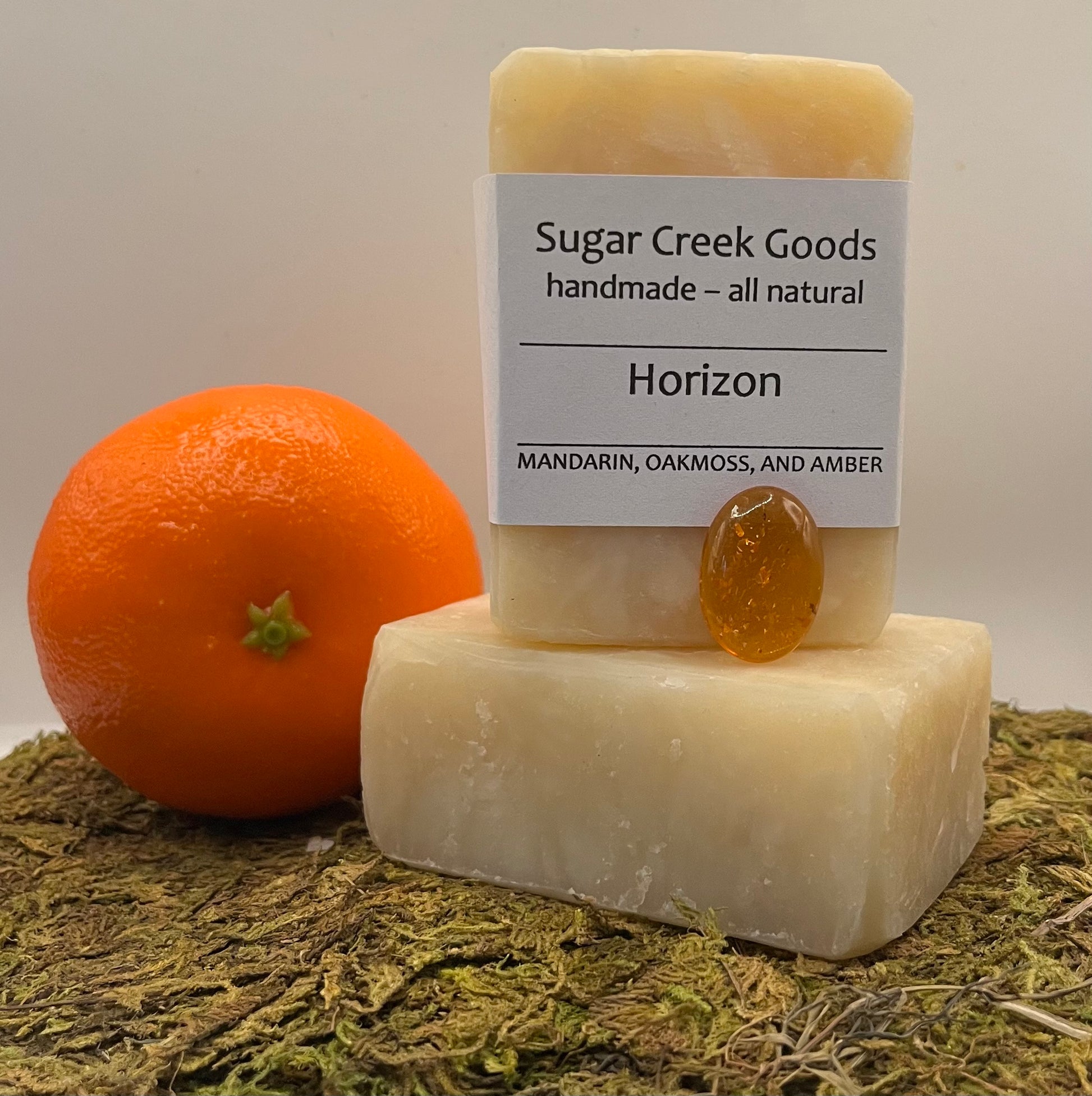 Ingredients: Saponified Oils of Lard, Olive, Coconut, Castor, Shea Butter, Cocoa Butter, Mandarin, Oakmoss, and Amber Fragrance