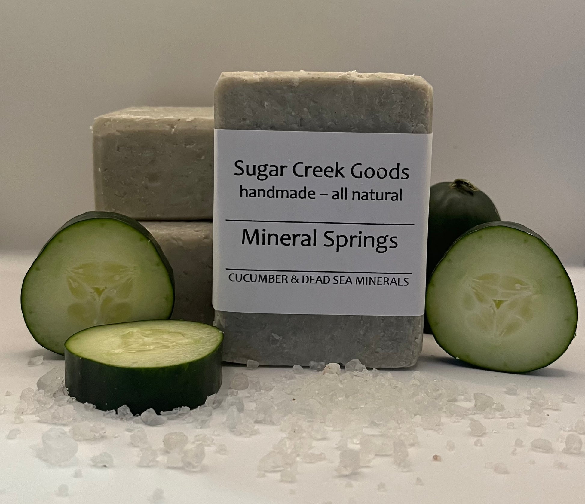 Ingredients: Saponified Oils of Lard, Olive, Coconut, Castor, Shea Butter, Cocoa Butter, Cucumber Fragrance, Dead Sea Clay, Dead Sea Salt