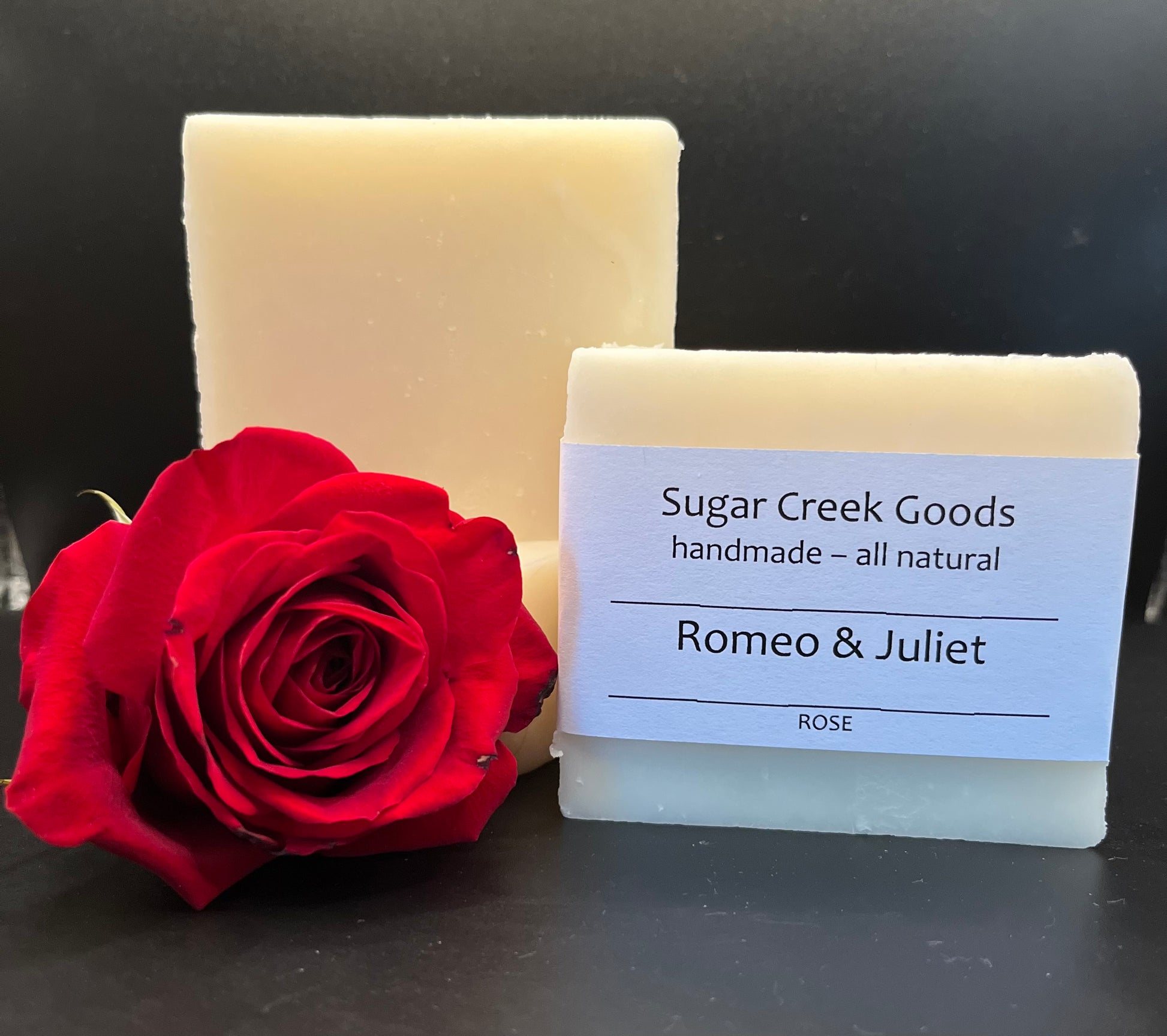 Ingredients: Saponified Oils of Lard, Olive, Coconut, Castor, Shea Butter, Cocoa Butter, Rose Fragrance