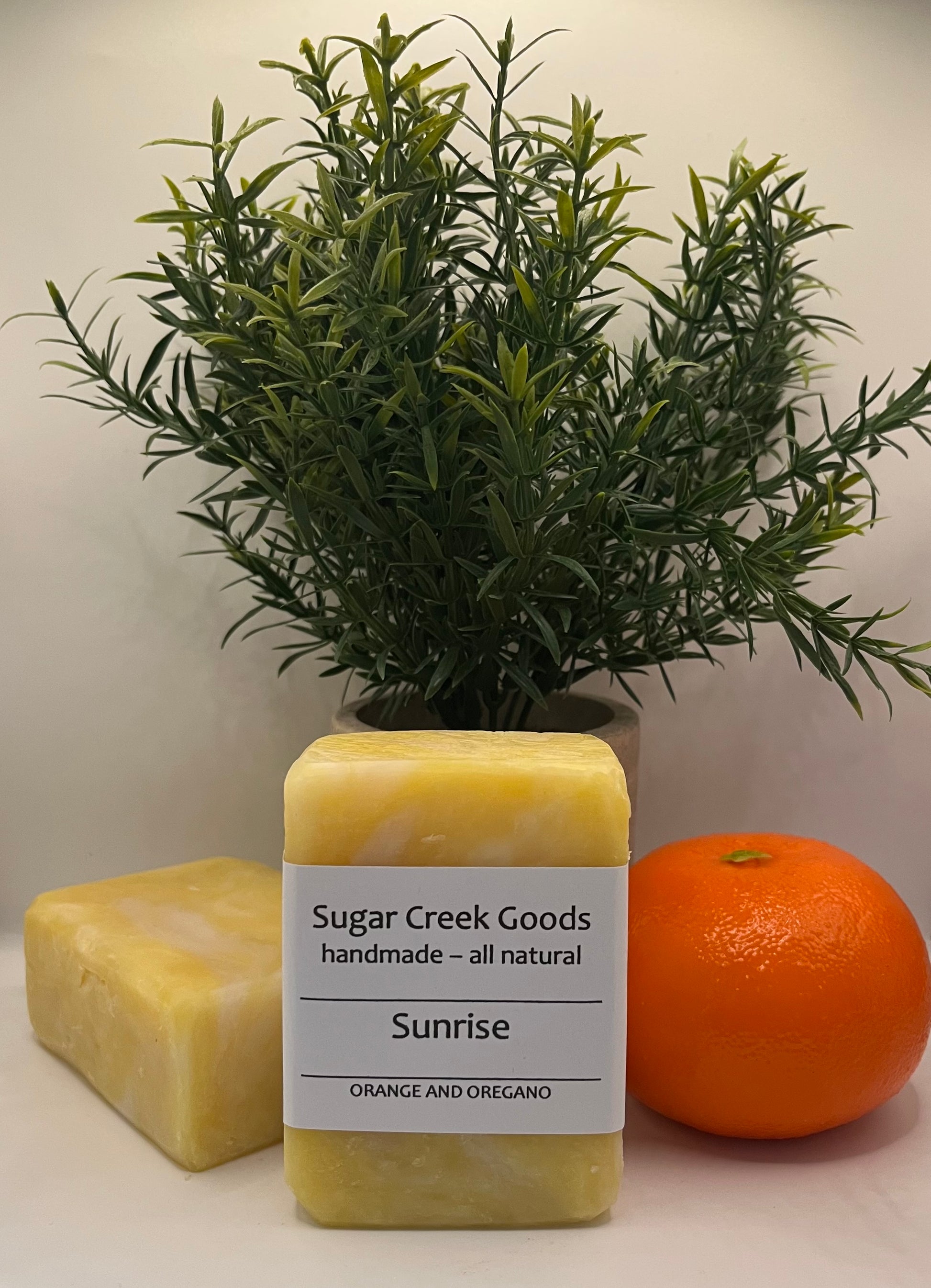 Ingredients: Saponified Oils of Lard, Olive, Coconut, Castor, Shea Butter, Cocoa Butter, Orange and Oregano Fragrance