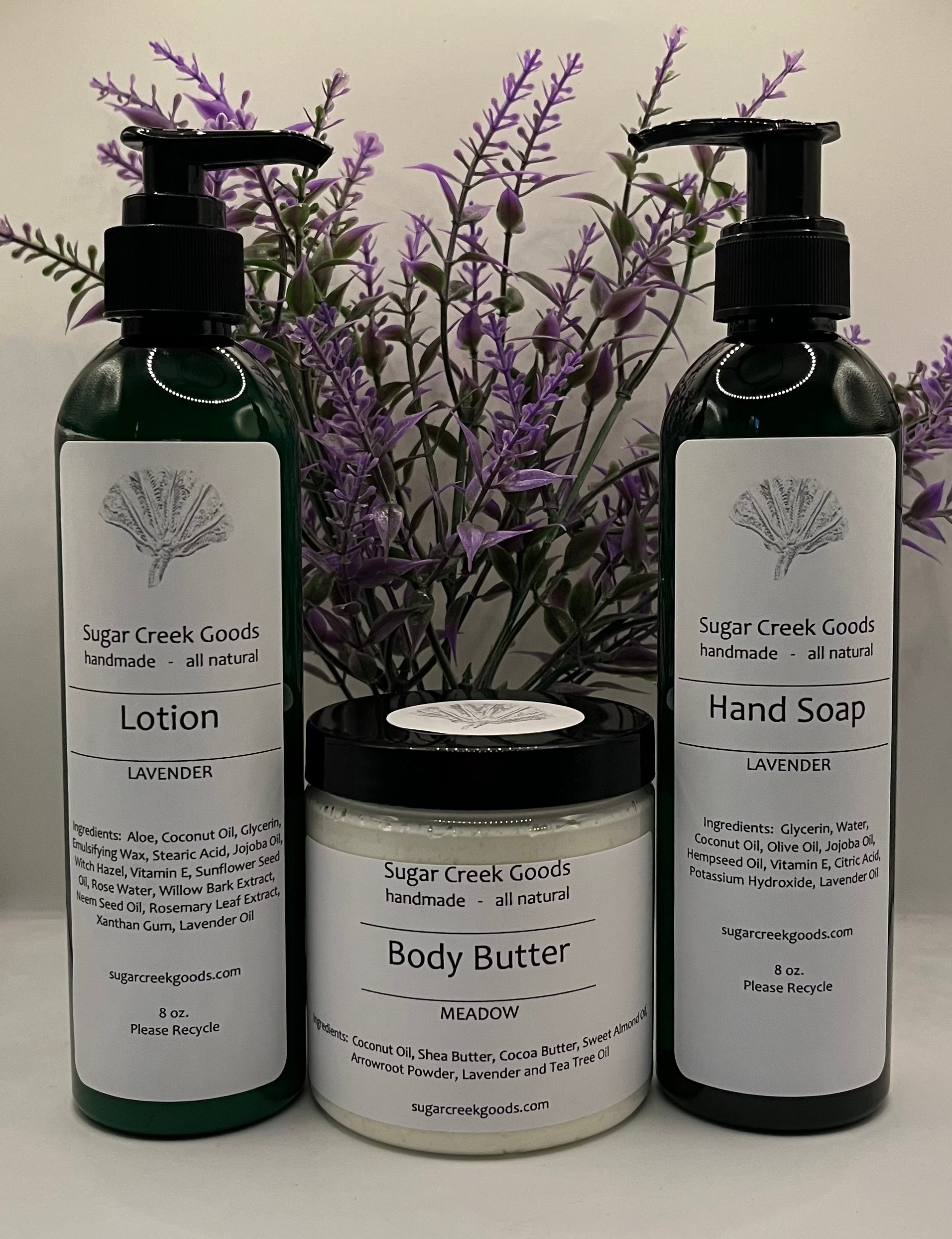 One each of Lavender Lotion, Meadow Body Butter, and Lavender Hand Soap