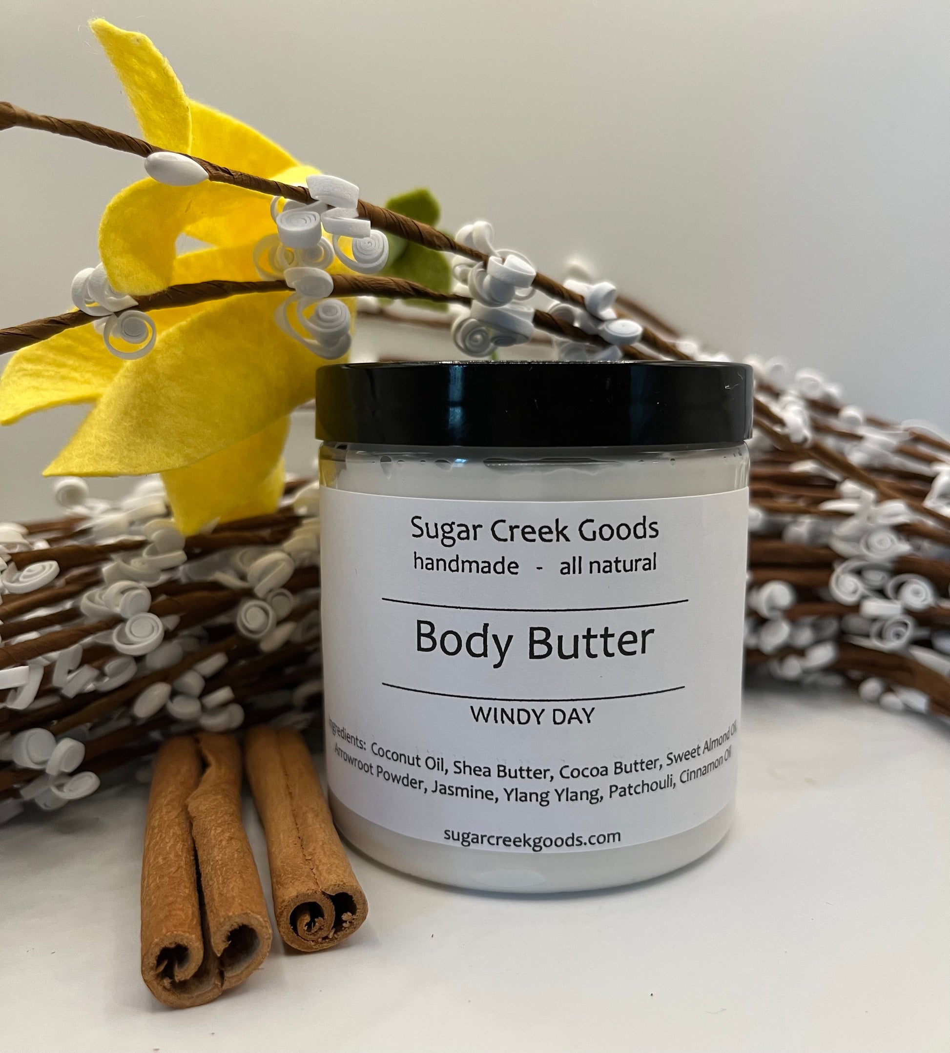 Ingredients: Coconut Oil, Shea Butter, Cocoa Butter, Sweet Almond Oil, Arrowroot Powder, Jasmine, Ylang Ylang, Patchouli, and Cinnamon Oil